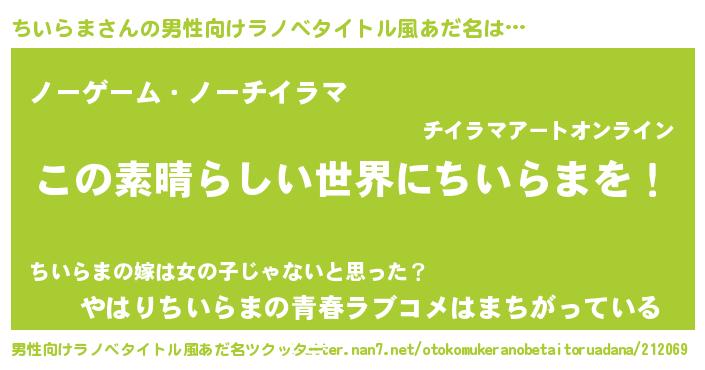 | 意味不明あだ名 | 『住所不定無職ちいらま(2歳)』 |