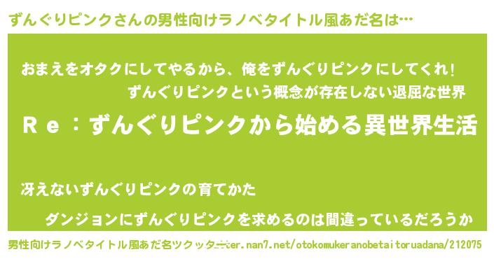 | 女子向けラノベタイトル風あだ名 | 『ずんぐりピンクストレイドッグス』 |