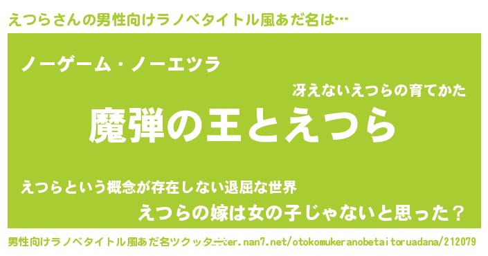 | 意味不明あだ名 | 『住所不定無職えつら(7歳)』 |