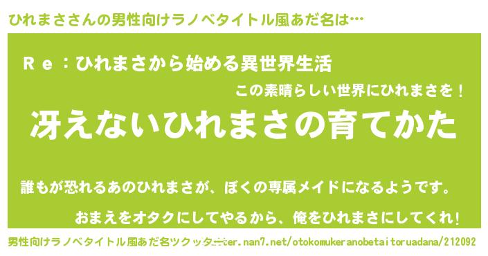 | 女子向けラノベタイトル風あだ名 | 『シンデレラひれまさ家の靴箱館』 |