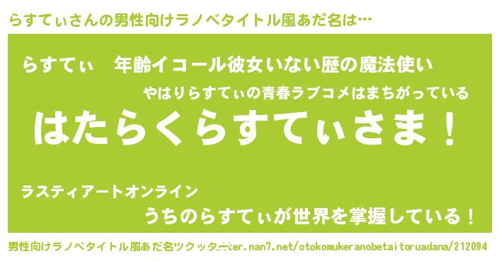 | 恥ずかしいあだ名 | 『らすっちょ』『プリティーらすてぃ』 |