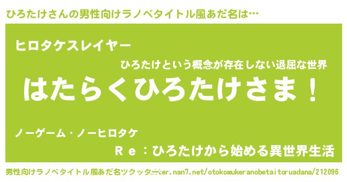 | ヘコむあだ名 | 『ひろたけ(苦笑)』『ひろっ子』 |