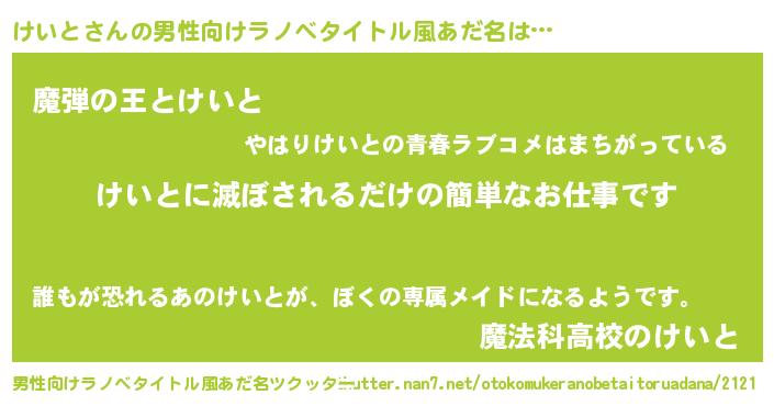 | 胡散臭い通販商品みたいなあだ名 | 『世界中を虜にした100年もののヴィンテージワイン…その名も「けいと」』 |