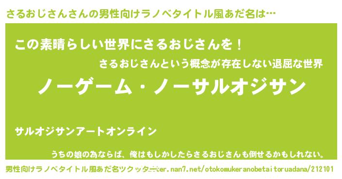 | 女子向けラノベタイトル風あだ名 | 『死神さるおじさんの再婚』 |