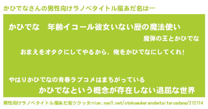 | 女子向けラノベタイトル風あだ名 | 『かひでな恋絵巻』 |
