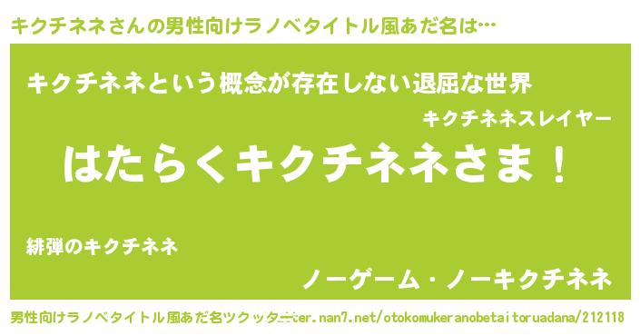 | 胡散臭い通販商品みたいなあだ名 | 『絶対に幸福をもたらす水素水…その名も「キクチネネ」』 |