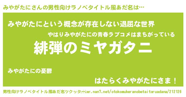 | 意味不明あだ名 | 『永久保存みやがたに』『自称みやがたに』 |