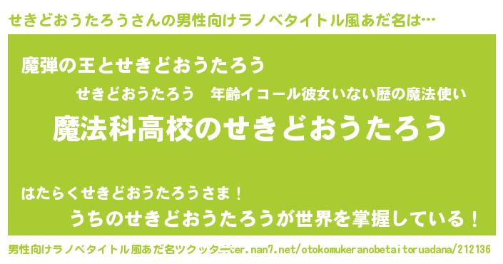 | 女子向けラノベタイトル風あだ名 | 『せきどおうたろうなんてお断りですっ。』 |