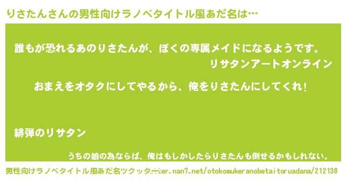 | 女子向けラノベタイトル風あだ名 | 『りさたん恋絵巻』『りさたんの契約王妃』 |