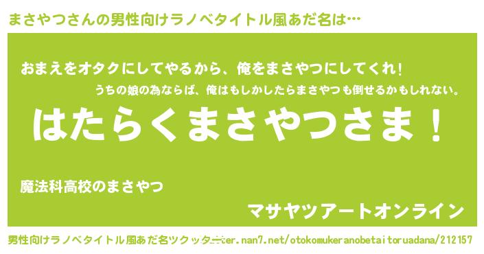 | ヒーロー風カッコイイあだ名 | 『友情の使者まさやつ』『幻影騎士マサ』 |
