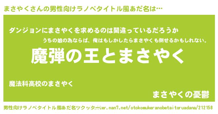 | 意味不明あだ名 | 『住所不定無職まさやく(12歳)』 |