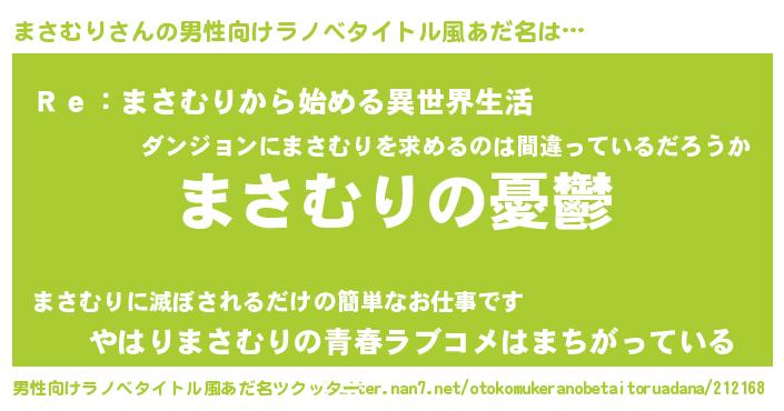 | 胡散臭い通販商品みたいなあだ名 | 『必ず成功する水晶球…その名も「まさむり」』 |