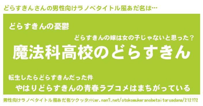 | 女子向けラノベタイトル風あだ名 | 『どらすきんなんてお断りですっ。』 |