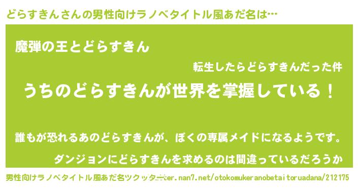| 意味不明あだ名 | 『住所不定無職どらすきん(85歳)』 |