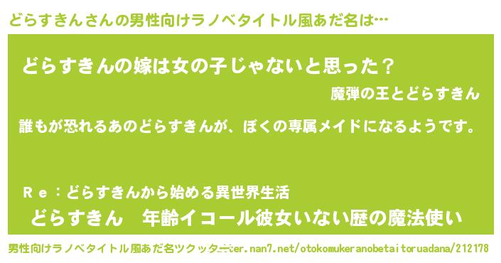 | 胡散臭い通販商品みたいなあだ名 | 『前代未聞の健康食品…その名も「どらすきん」』 |