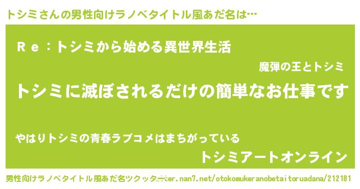 | ファンタジー風あだ名 | 『ゼトシトゥ』『トシフェル』 |