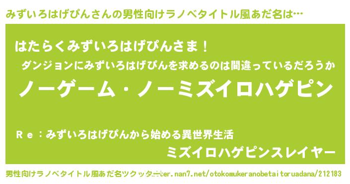 | 女子向けラノベタイトル風あだ名 | 『みずいろはげぴん恋絵巻』 |