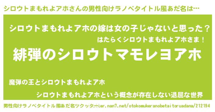 | ヘコむあだ名 | 『シロっぺ』『シロウトまもれよアホ(笑)』 |