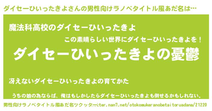 | 女子向けラノベタイトル風あだ名 | 『(仮)ダイセーひいったきよのやんごとなき事情』 |