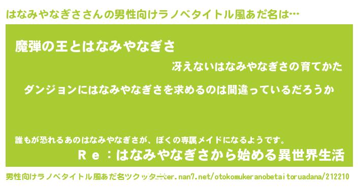| 胡散臭い通販商品みたいなあだ名 | 『信頼と実績のペンダント…その名も「はなみやなぎさ」』 |
