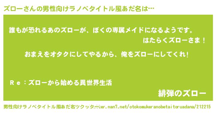 | ヘコむあだ名 | 『ズロー(震え声)』『ズロお』『牛乳』 |