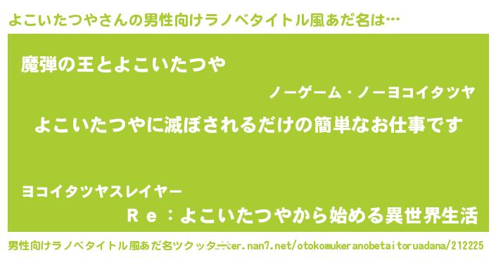 | 意味不明あだ名 | 『住所不定無職よこいたつや(98歳)』 |