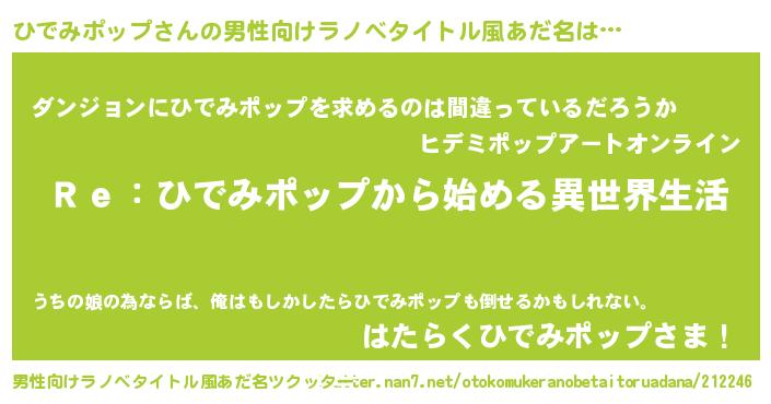 | 女子向けラノベタイトル風あだ名 | 『闇のひでみポップ』 |