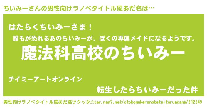 | 女子向けラノベタイトル風あだ名 | 『ちいみーなんてお断りですっ。』 |