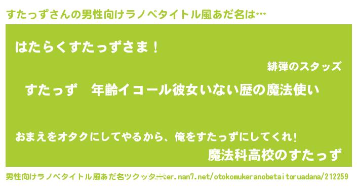 | 女子向けラノベタイトル風あだ名 | 『すたっずの玉の輿計画!』 |