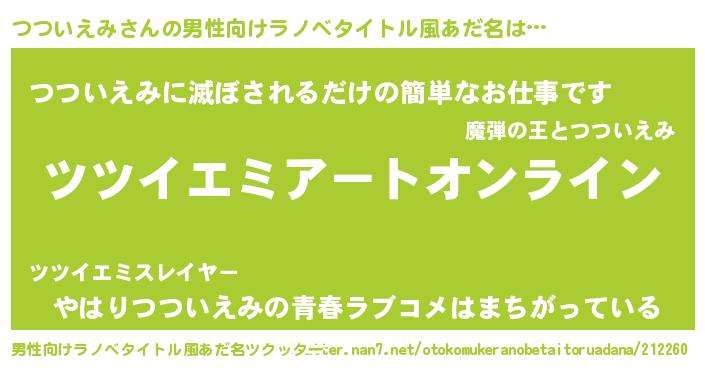 | 女子向けラノベタイトル風あだ名 | 『つついえみ姫と円卓の騎士』 |