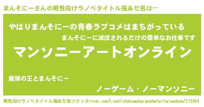 | 女子向けラノベタイトル風あだ名 | 『まんそにー姫と円卓の騎士』 |