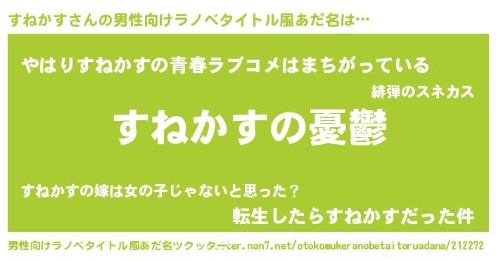 | 女子向けラノベタイトル風あだ名 | 『すねかす姫と円卓の騎士』 |