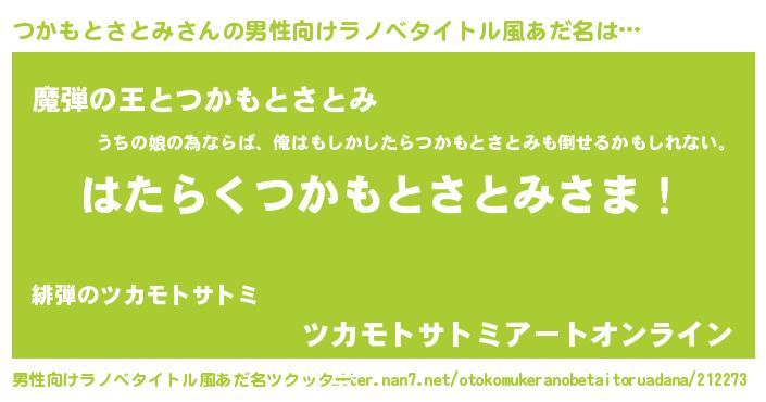 | 意味不明あだ名 | 『住所不定無職つかもとさとみ(84歳)』 |