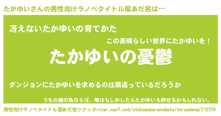 | 女子向けラノベタイトル風あだ名 | 『たかゆい姫と円卓の騎士』 |