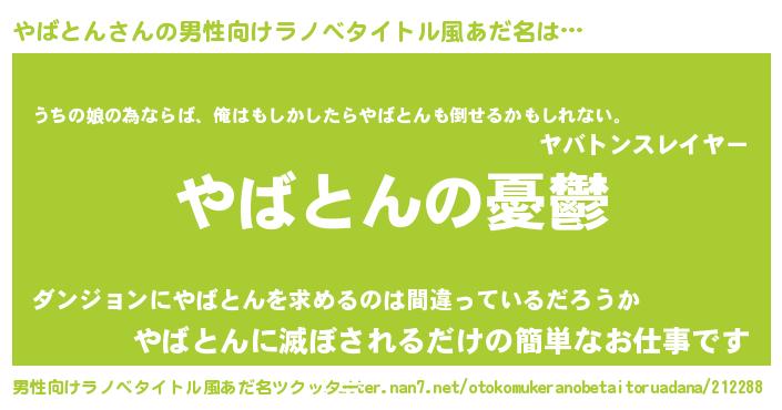 | 胡散臭い通販商品みたいなあだ名 | 『必ず成功する水晶球…その名も「やばとん」』 |