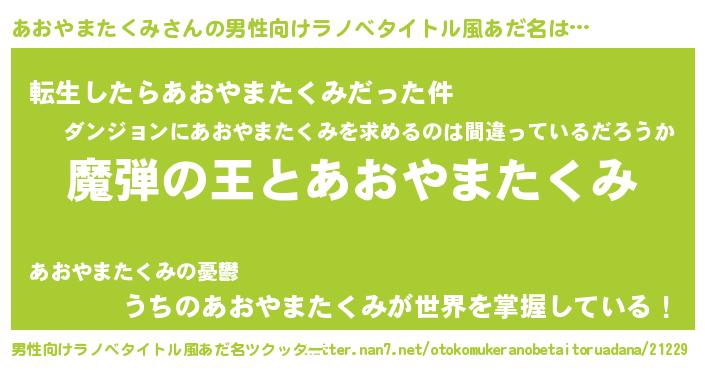 | 意味不明あだ名 | 『住所不定無職あおやまたくみ(7歳)』 |