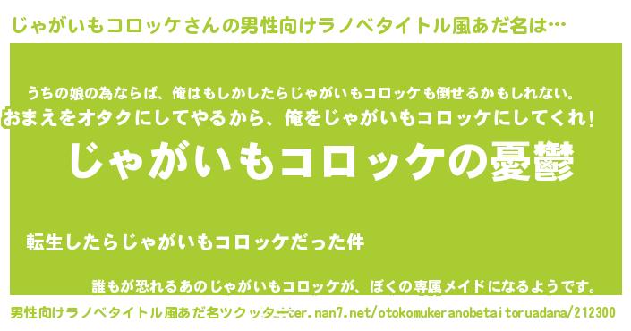 | 胡散臭い通販商品みたいなあだ名 | 『モテモテ間違いなし霊験あらたかなお札…その名も「じゃがいもコロッケ」』 |