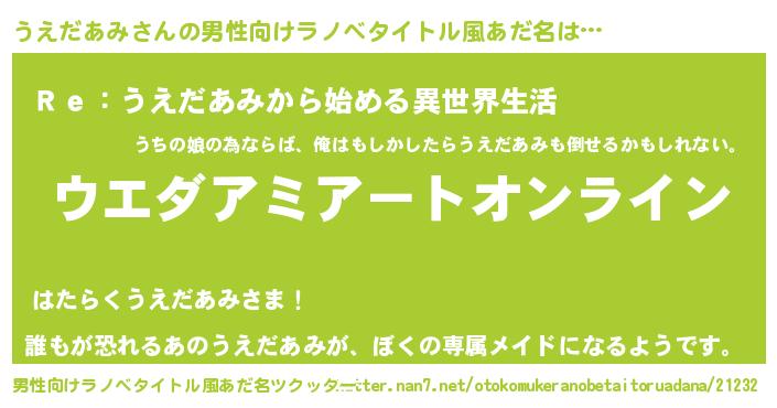 | ヘコむあだ名 | 『うえにゅー』『うえだあみ(遠い目)』 |