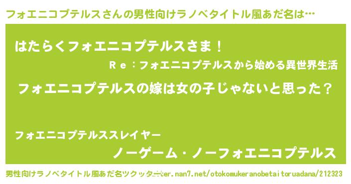 | 女子向けラノベタイトル風あだ名 | 『フォエニコプテルス様がみてる』 |