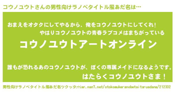 | 女子向けラノベタイトル風あだ名 | 『誰かこのコウノユウトを説明してください! ~契約から始まるウェディング~』 |