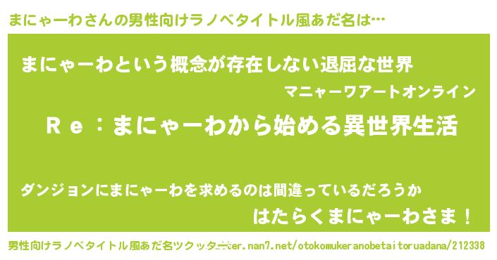 | 女子向けラノベタイトル風あだ名 | 『闇のまにゃーわ』 |