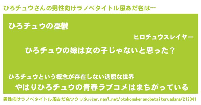 | 女子向けラノベタイトル風あだ名 | 『ひろチュウ様がみてる』 |