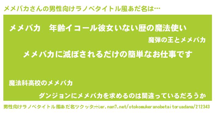 | ヒーロー風カッコイイあだ名 | 『天弓騎士メメ』『仮面メメダー』 |