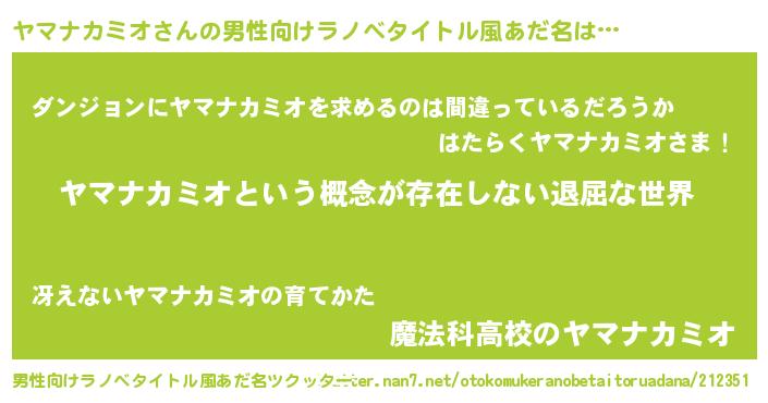 | 胡散臭い通販商品みたいなあだ名 | 『絶対に幸福をもたらす健康食品…その名も「ヤマナカミオ」』 |