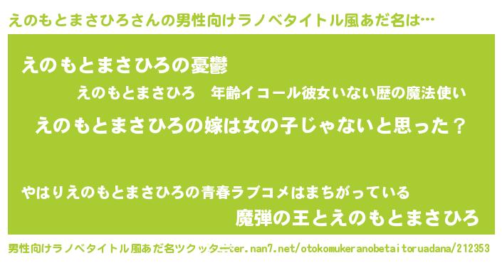 えのもとまさひろさんの男性向けラノベタイトル風あだ名をツクッター!