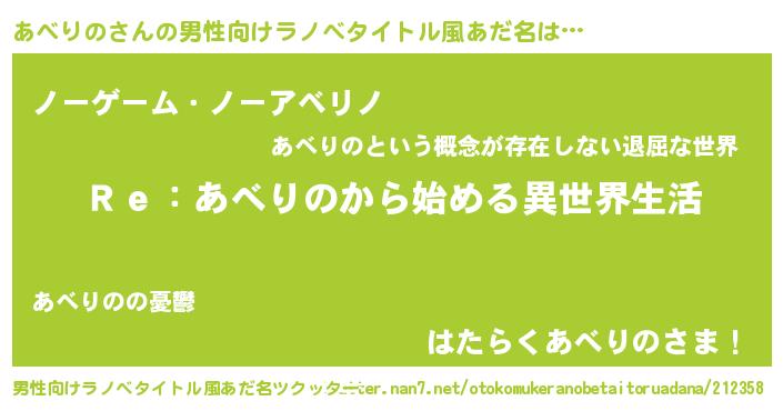 | 意味不明あだ名 | 『自称あべりの』『永久保存あべりの』 |
