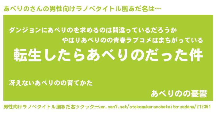 | 胡散臭い通販商品みたいなあだ名 | 『伝統あるサプリメント…その名も「あべりの」』 |