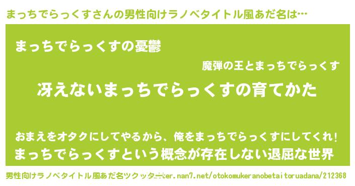 | 胡散臭い通販商品みたいなあだ名 | 『モテモテ間違いなし水晶球…その名も「まっちでらっくす」』 |