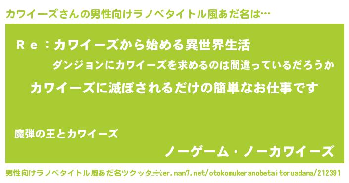 | 胡散臭い通販商品みたいなあだ名 | 『テレビで話題の高麗人参…その名も「カワイーズ」』 |