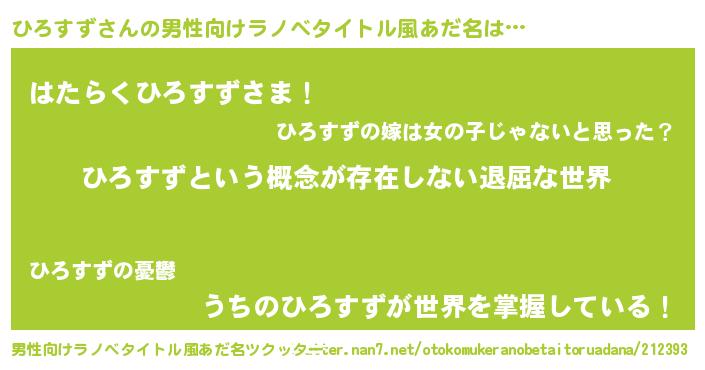 | ヒーロー風カッコイイあだ名 | 『ネオヒロスズ』『暗黒騎士ヒロ』 |